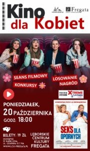Lęborskie Centrum Kultury Fregata zaprasza na październikowe spotkanie z cyklu „Kino dla Kobiet”. W poniedziałek, 20 października, na ekranie lęborskiej Fregaty zobaczymy „Seks dla opornych” – historię o przełamywaniu barier, miłości i codziennych przygodach w relacjach. Początek o godzinie 18. Kino dla Kobiet w swoim założeniu ma być wieczorem dla wszystkich Pań, które chcą oderwania […]