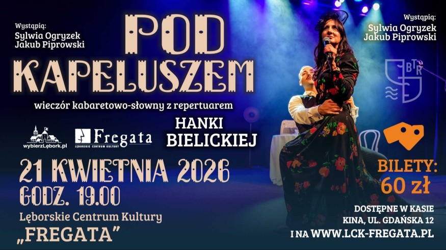 Zapraszamy na wyjątkowy wieczór kabaretowo-słowny „Pod kapeluszem” w Lęborku! Wydarzenie odbędzie się 21 kwietnia 2026 o 19:00 w Kinie Fregata. Kup bilet i baw się z nami!