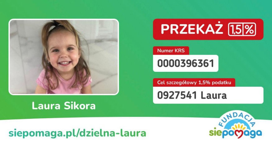Zbiórka pieniędzy prowadzona jest na portalu siepomaga.pl pod hasłem "3,5-letnia Laura walczy o życie".