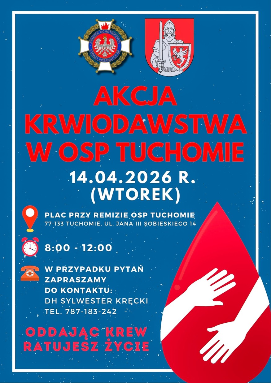 Ochotnicza Straż Pożarna w Tuchomiu w powiecie bytowskim organizuje jutro kolejną z cyklicznych akcji honorowego oddawania krwi.